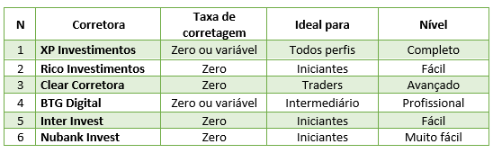 Comparativo das principais corretoras